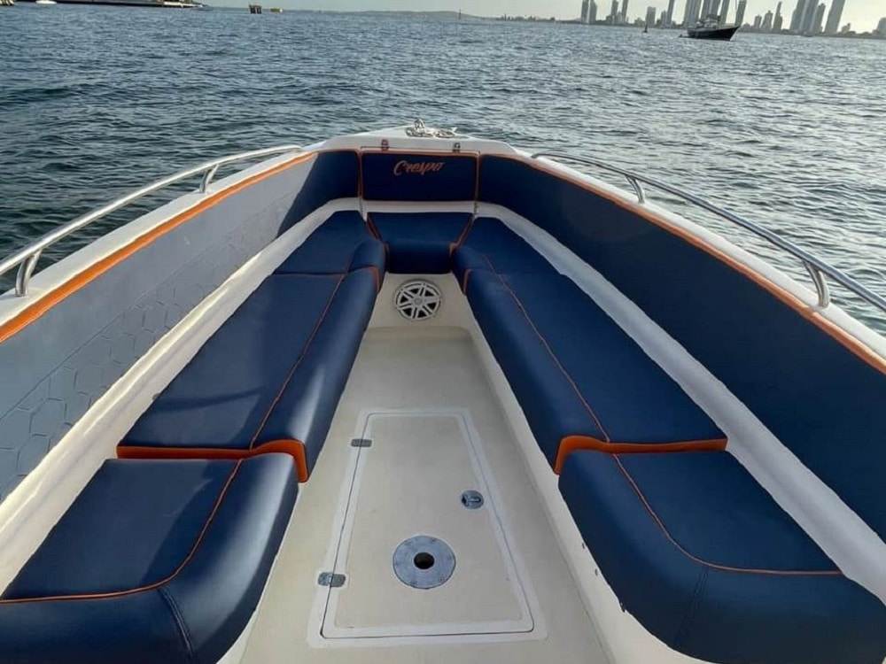 Nuestras lanchas turísticas suelen ser de tamaño mediano a grande, con capacidad para hasta 30 personas, y están equipadas con cojinería en cuero, toldos para sombra, altavoces con sonido profesional y espacios pensados para disfrutar del trayecto tanto al sol como a la sombra.