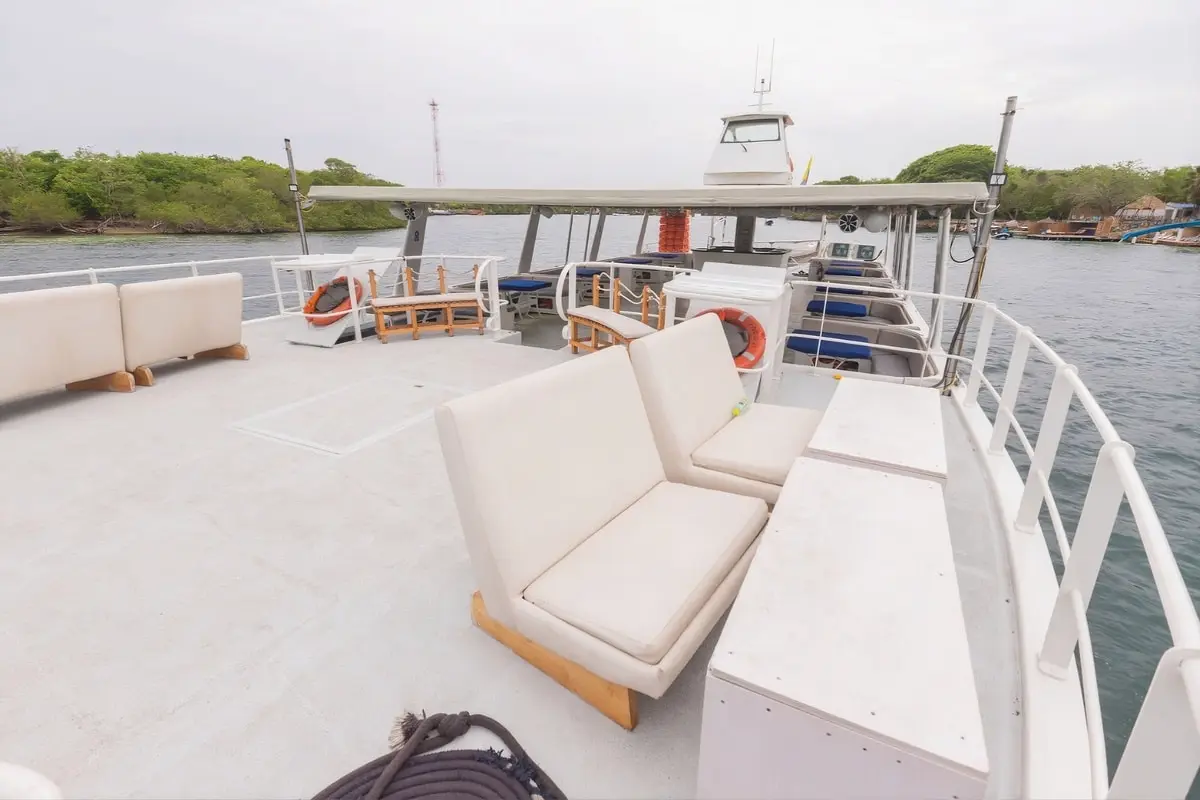 El paseo se realiza en un cómodo y moderno catamarán que garantiza estabilidad, seguridad y espacios ideales para disfrutar del recorrido.
